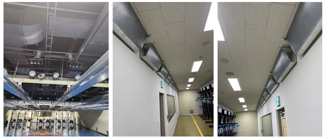 이번 프로젝트는 단순 설비 설치가 아닌, 사격장 구조와 훈련 동선을 고려한 환기 흐름 설계, 그리고 실사격 환경을 기준으로 한 성능 확보를 목표로 진행되었다. 올스웰은 사대 후방에서 사로 방향으로 공기 흐름을 유도하는 급기 설계와, 사대 및 피탄벽 구간별로 분리된 배기 구조를 적용하여 사격 훈련 중에도 안정적인 실내 환경이 유지될 수 있도록 시스템을 구성했다 .